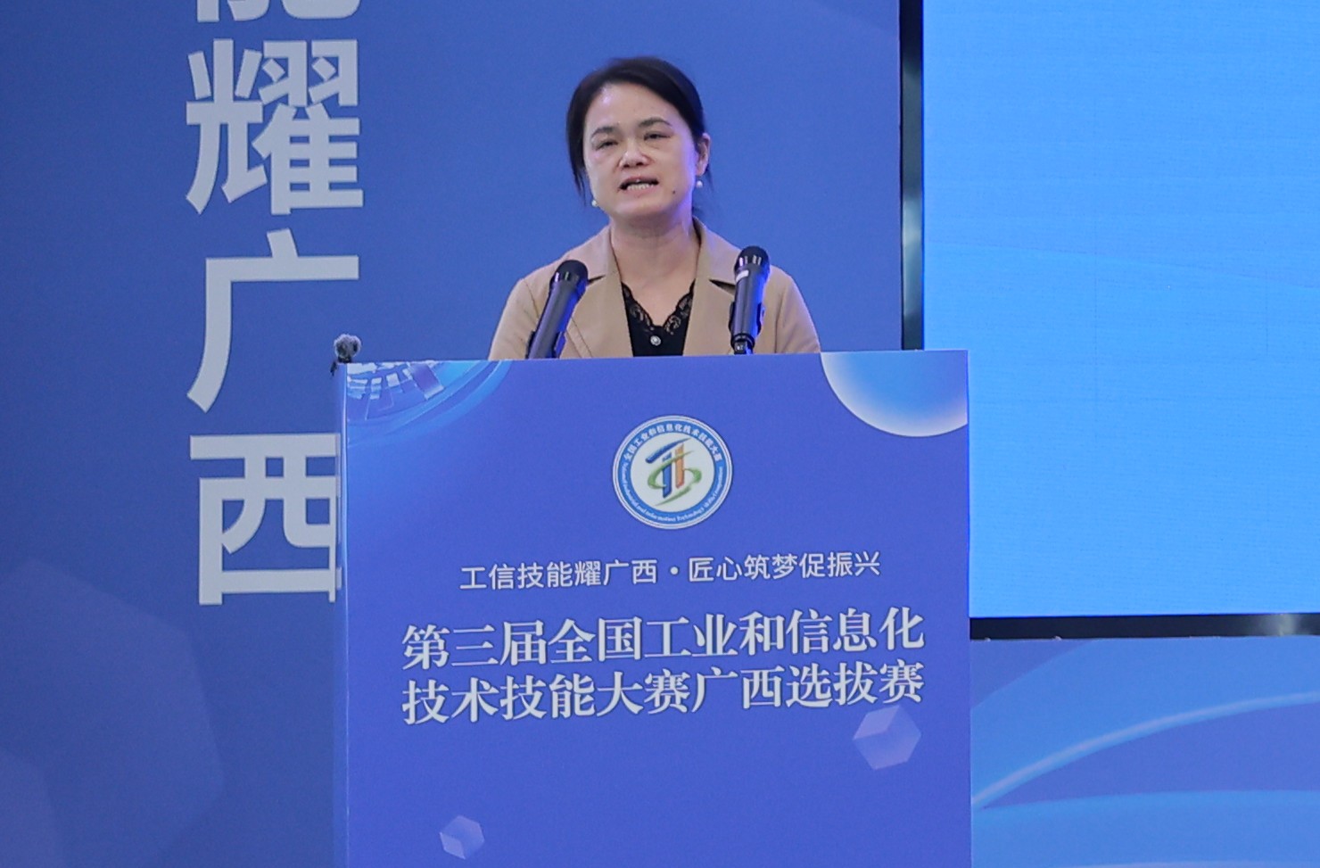 10月27日上午,由自治区工业和信息化厅、人力资源社会保障厅、教育厅、总工会、共青团广西区委共同主办的第三届全国工业和信息化技术技能大赛广西选拔赛开幕式在广西机电职业技术学院成功召开,标志着本届大赛正式拉开帷幕。本届大赛以“工信技能耀广西,匠心筑梦促振兴”为主题,由广西机电职业技术学院、广西工业职业技术学院和广西企业与企业家联合会承办。