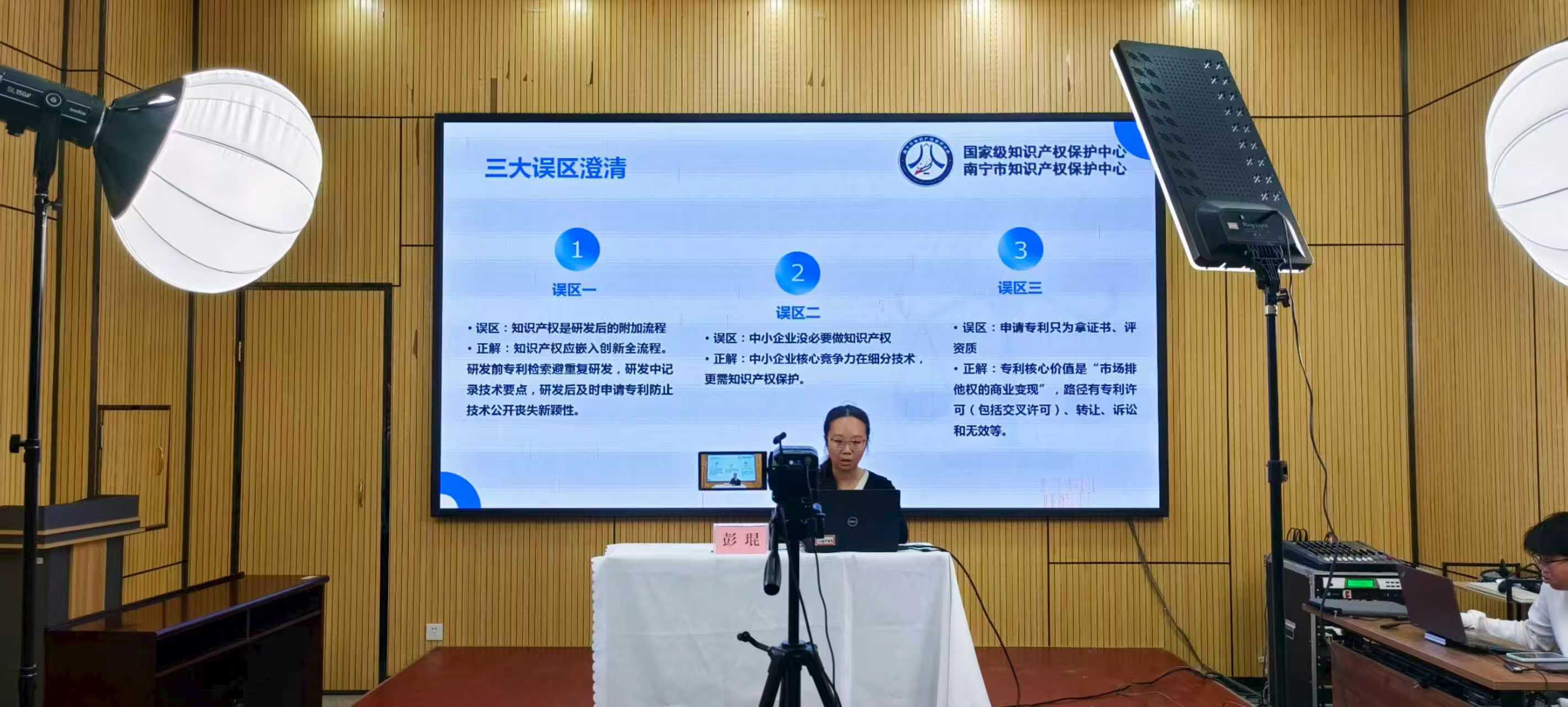 南宁市知识产权保护中心快速维权部彭琨部长授课现场