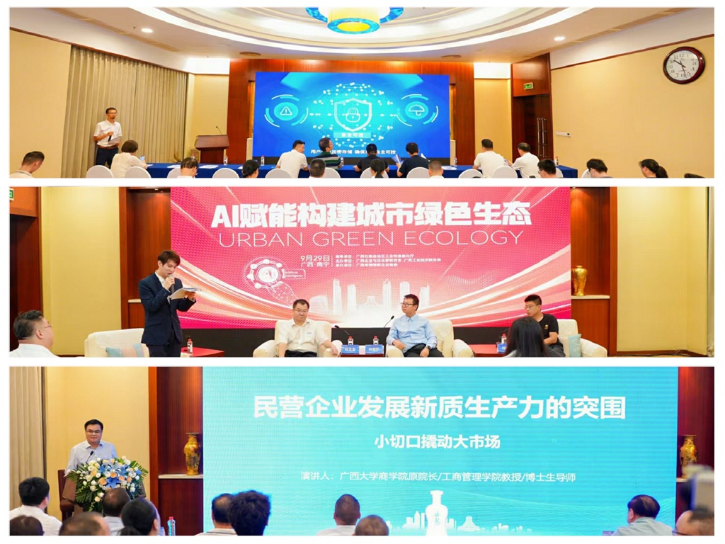 (从上到下:论坛一AI驱动创新·智启数字化中国知网承办;论坛二AI赋能构建城市绿色生态;论坛三战略谋划,新质赋能——桂商高质量发展论坛)